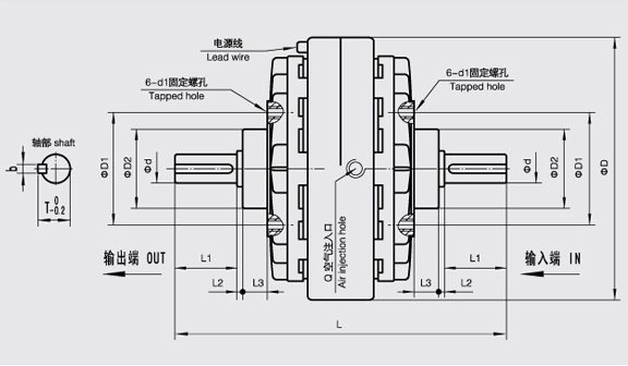 實(shí)際滑差功率為 FL型磁粉離合器在無變速機(jī)構(gòu)的情況下卷繞材料所需的最大張力與最大卷繞半徑的乘積應(yīng)不超過額定轉(zhuǎn)矩,同時(shí)應(yīng)保證制動(dòng)器的實(shí)際滑差功率小于允許滑差功率。 在滑差功率滿足的情況下,把離合器放在高速級(jí),則離合器的轉(zhuǎn)矩可以較小,則可將離合器放置于傳動(dòng)機(jī)構(gòu)的中間或后面,增大工作轉(zhuǎn)矩減小滑差。 需要重點(diǎn)注意的是,建議FL型磁粉離合器采用彈性聯(lián)軸器與原動(dòng)機(jī)或負(fù)載聯(lián)接,避免軸端承受徑向力,且當(dāng)采用皮帶或齒輪傳動(dòng)時(shí),需要用支架或其它相應(yīng)的機(jī)構(gòu)將它與FL型磁粉離合器隔離。