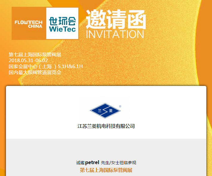 2018第七屆FLOWTECH CHINA上海國(guó)際泵管閥展覽會(huì)(2018.05.31-06.02)在上海虹橋國(guó)家會(huì)展中心舉行,我司展號(hào)位為: 6.1H599,歡迎新老客戶蒞臨指導(dǎo)!